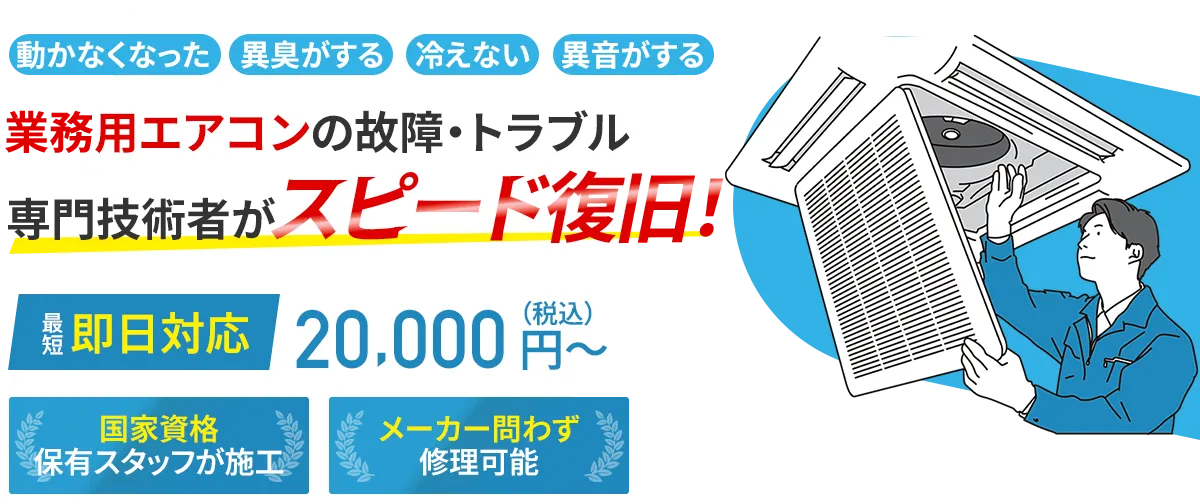 管工事施工技師・建設物衛生管理監督者など、国家資格保有者によるプロの視点で機器本体だけでなく電源まわり・配線・設置環境まで丁寧に確認。 原因を的確に絞り込み、ムダのない最短ルートで復旧します。。