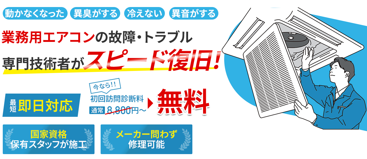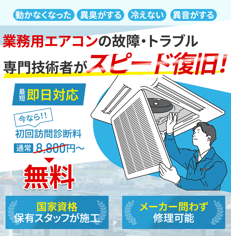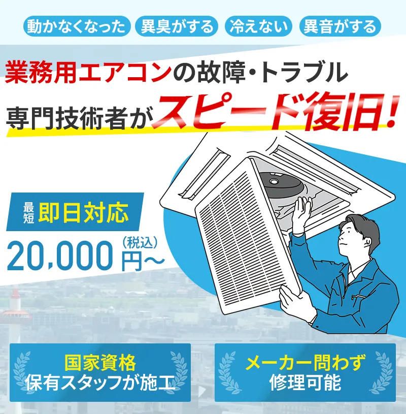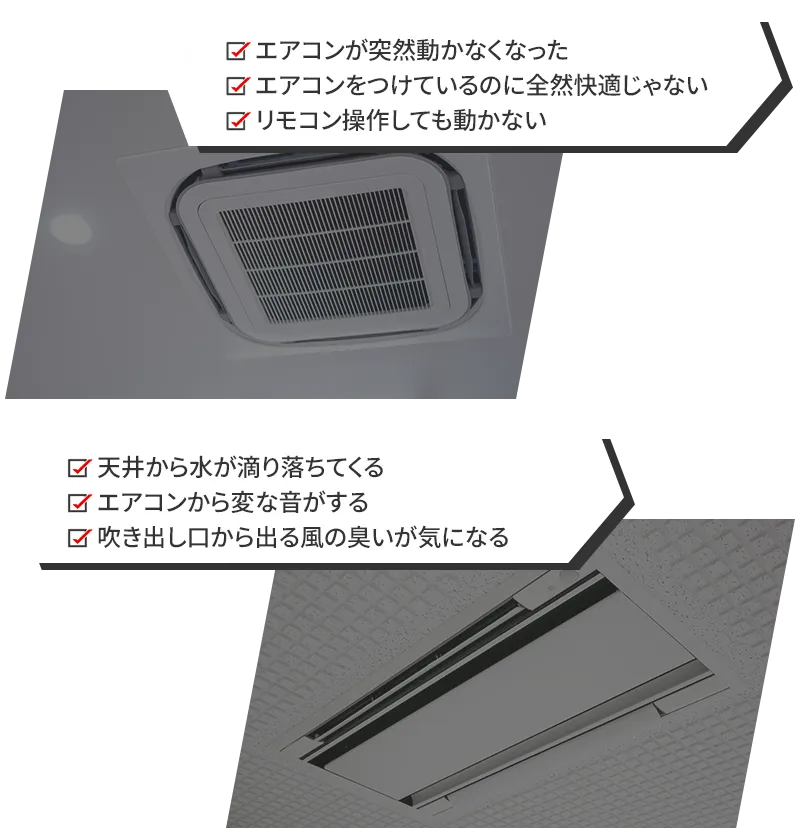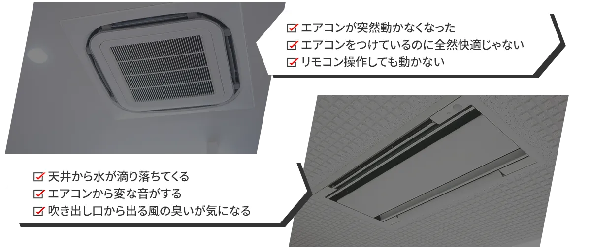 はい、以下の情報をお伝えいただけますと診断・準備がスムーズになり、当日の対応も早くなります。・機器のメーカー名・型式・設置環境(天井の高さ・設置場所の広さなど)・現在の症状やエラーコード(表示がある場合)